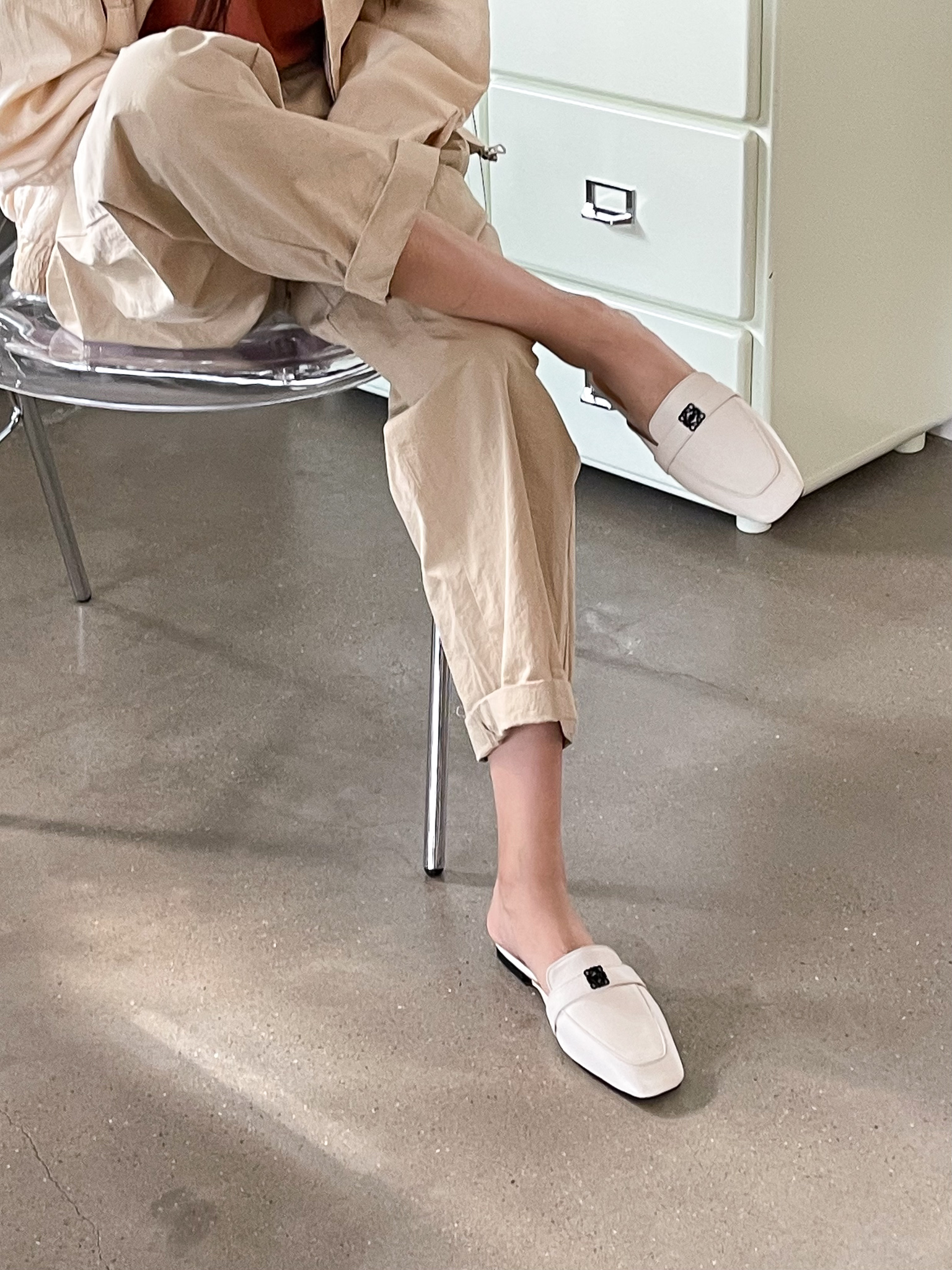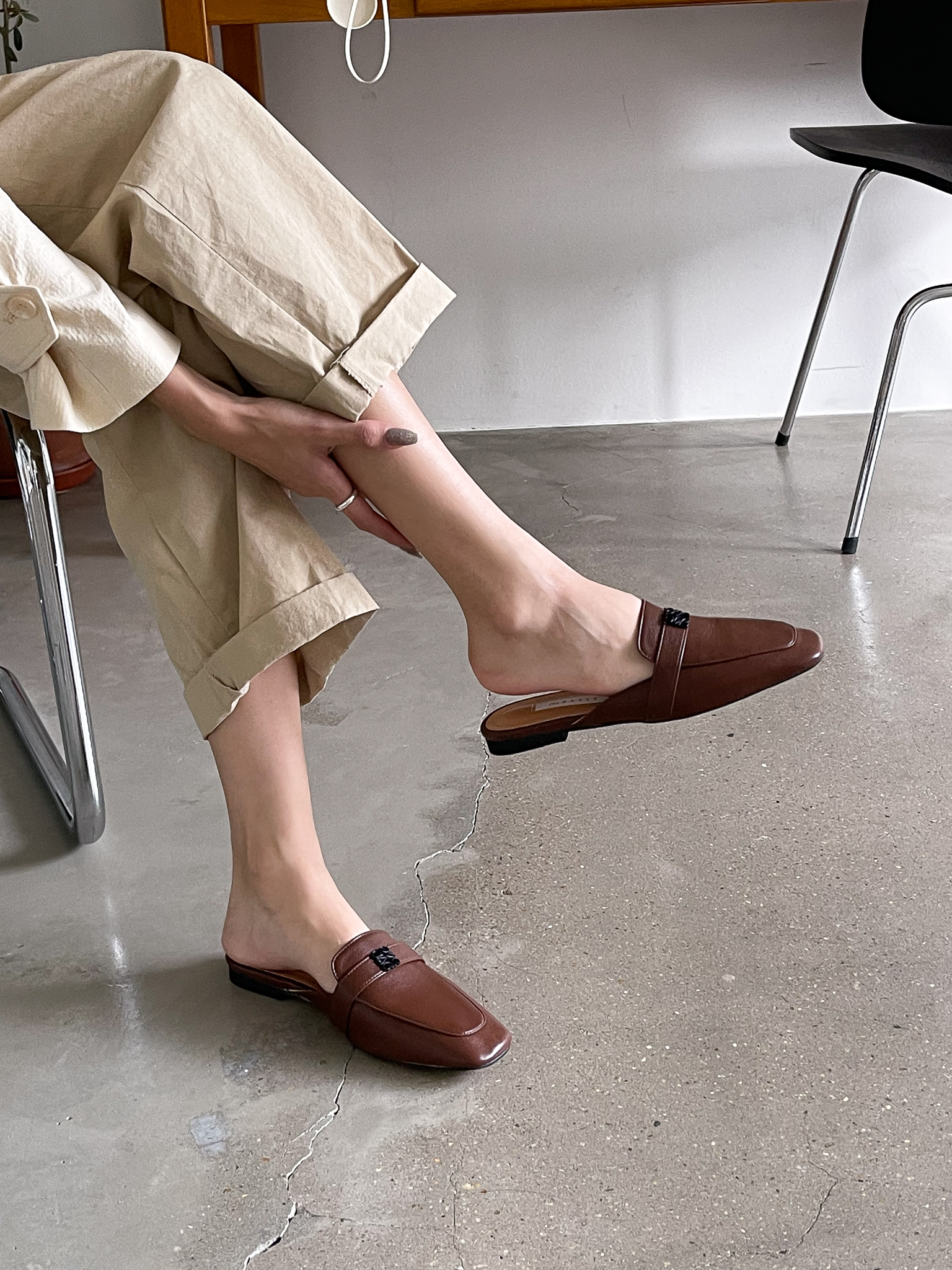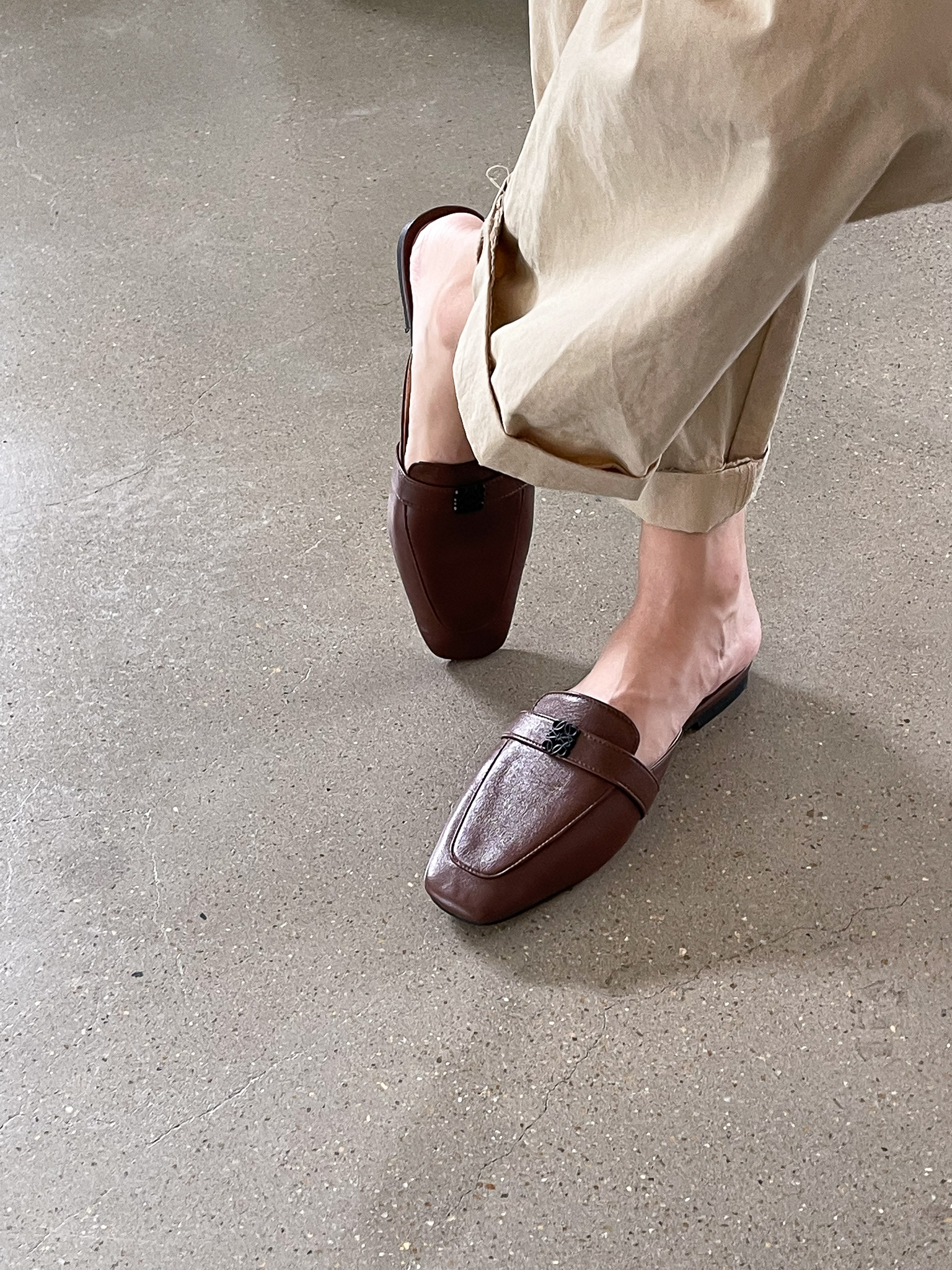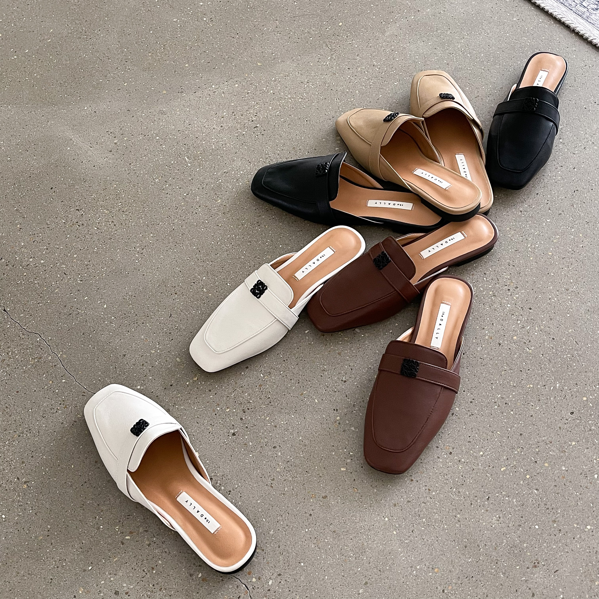 심플 플라워 버클 사각장식 뮬 블로퍼 : 25H
