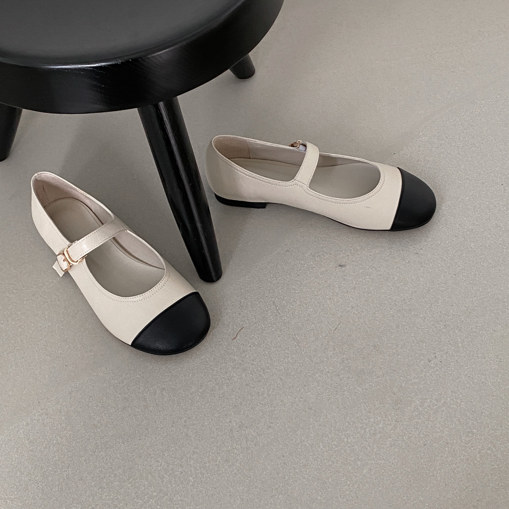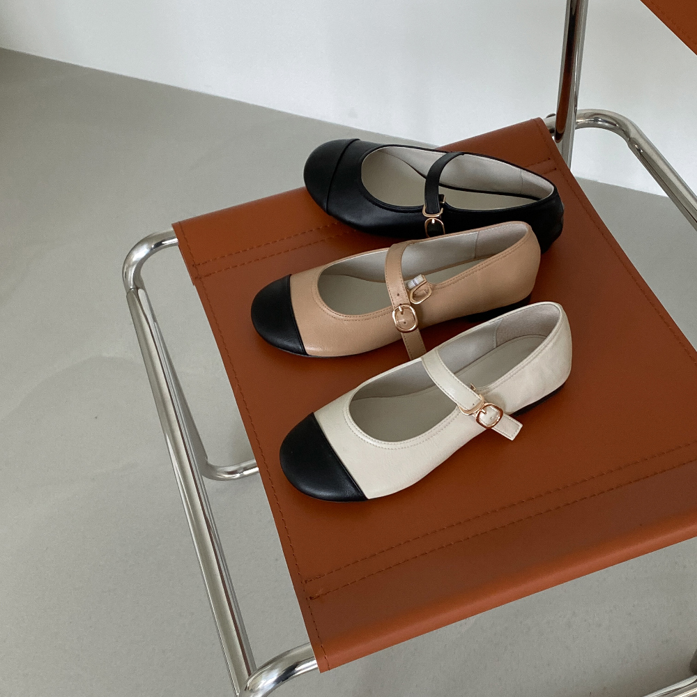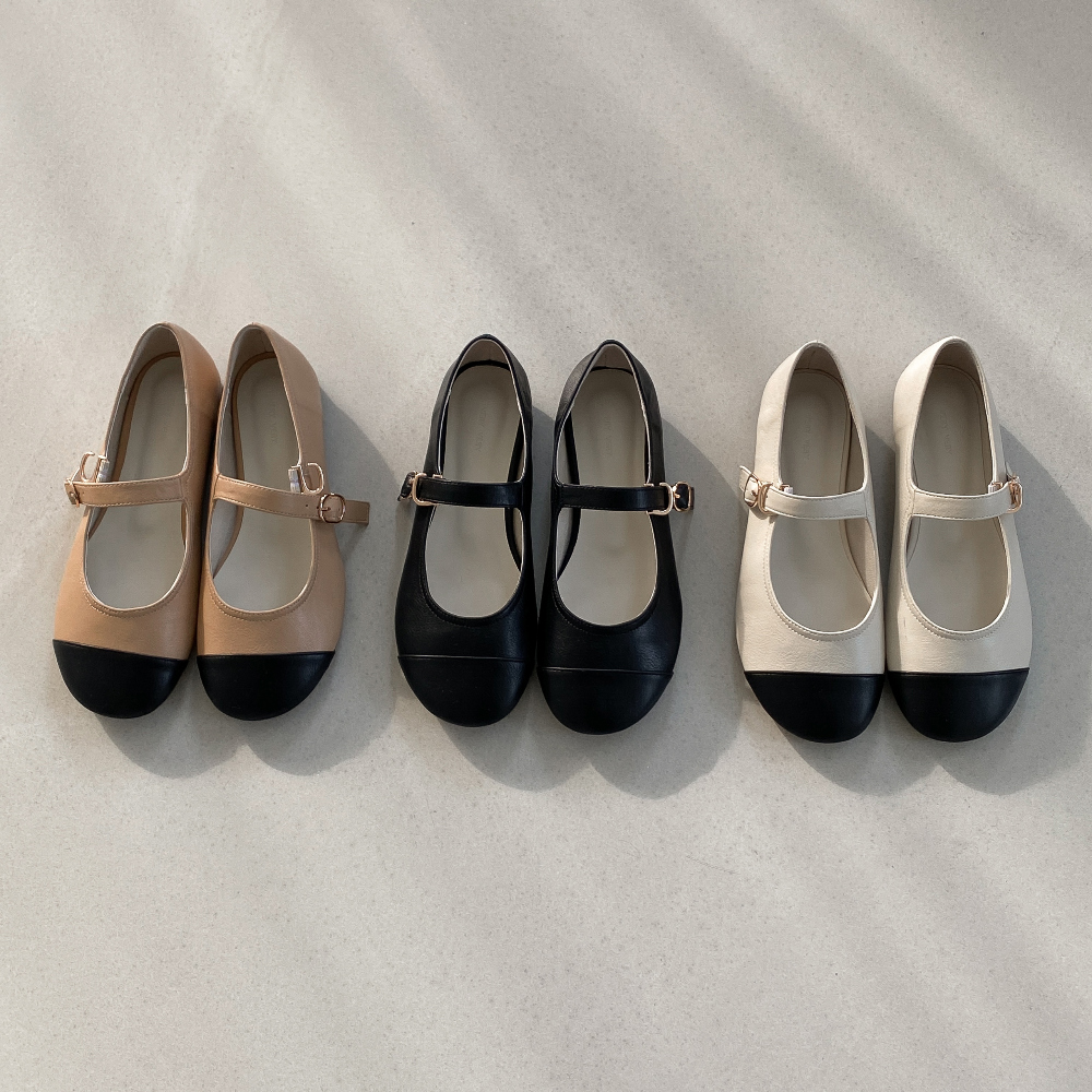 둥근코 메리제인 버클 스트랩 투톤 콤비 플랫슈즈 : 25H