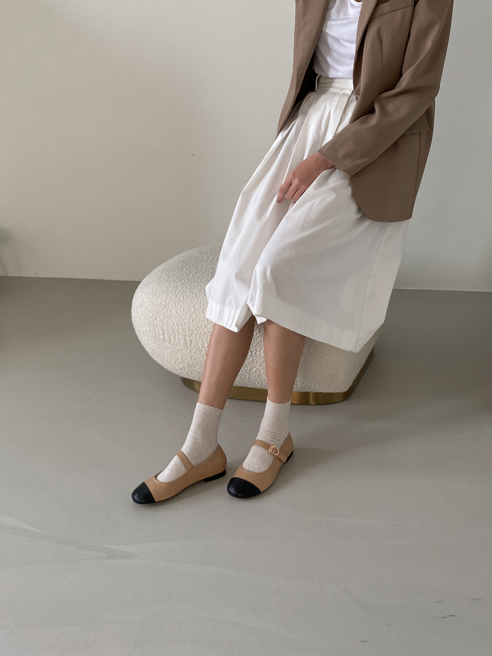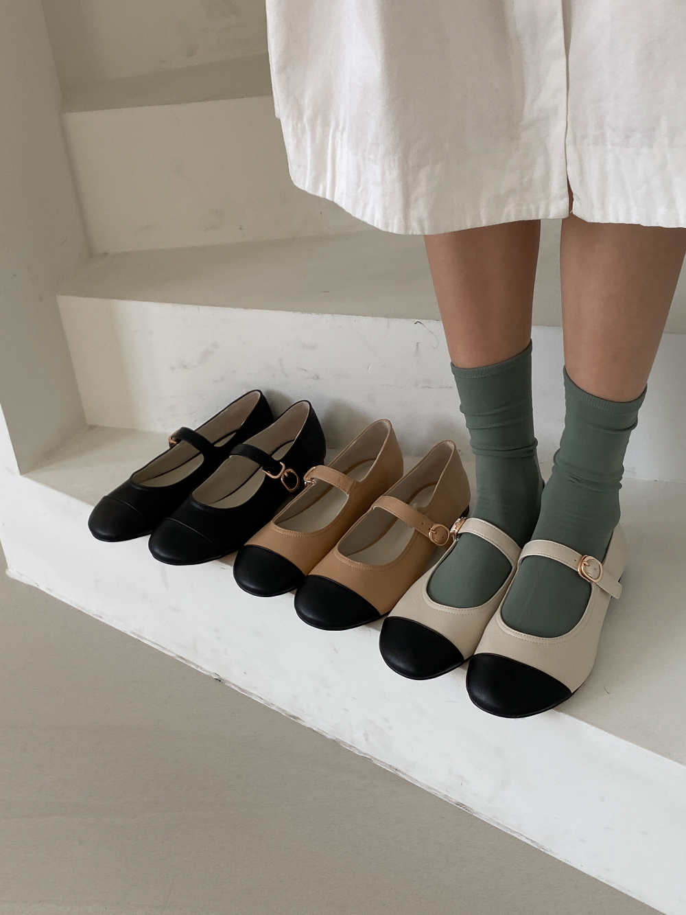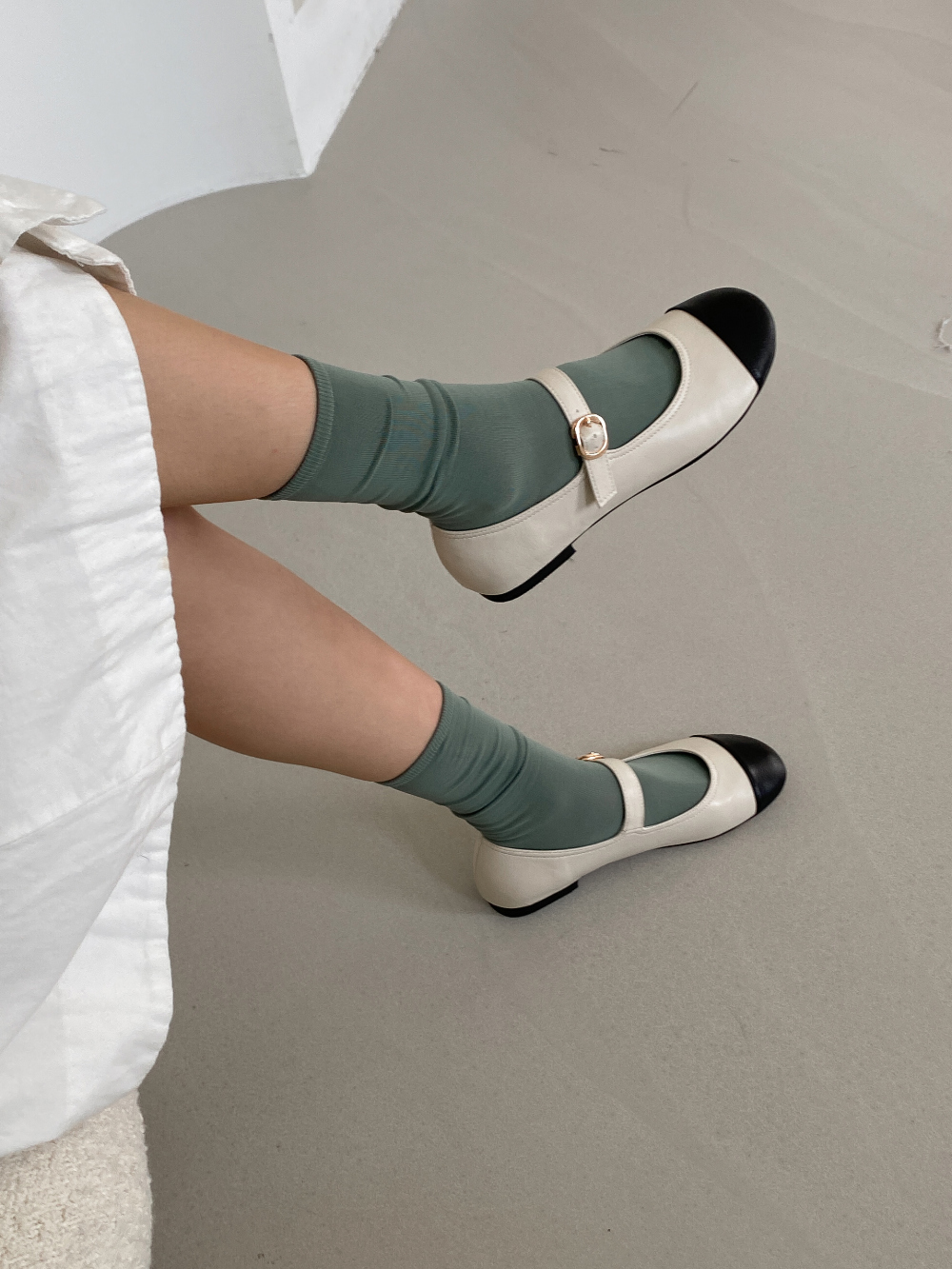 둥근코 메리제인 버클 스트랩 투톤 콤비 플랫슈즈 : 25H