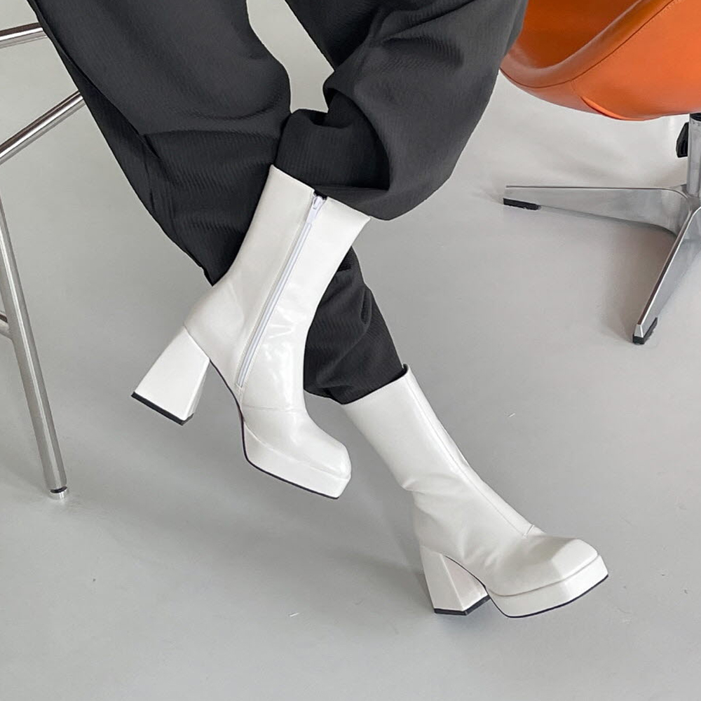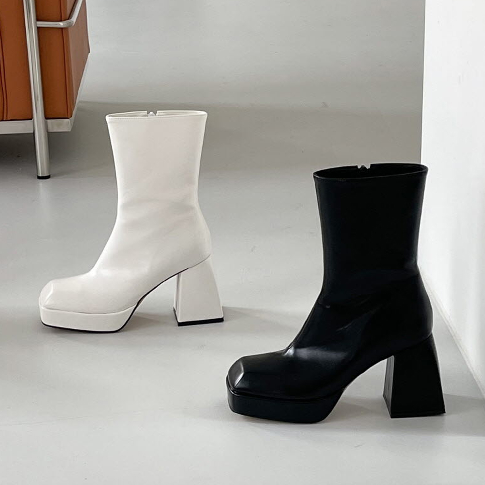 사각코 가보시 플랫폼 통굽 앵클부츠힐 : 25H
