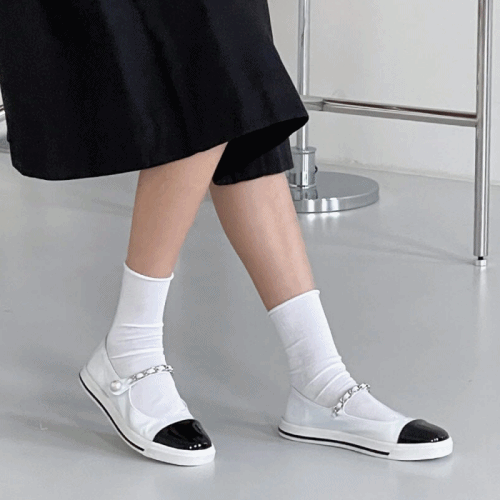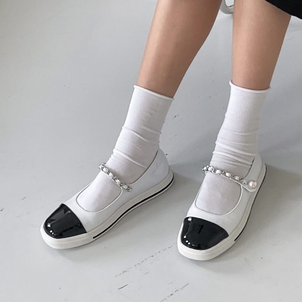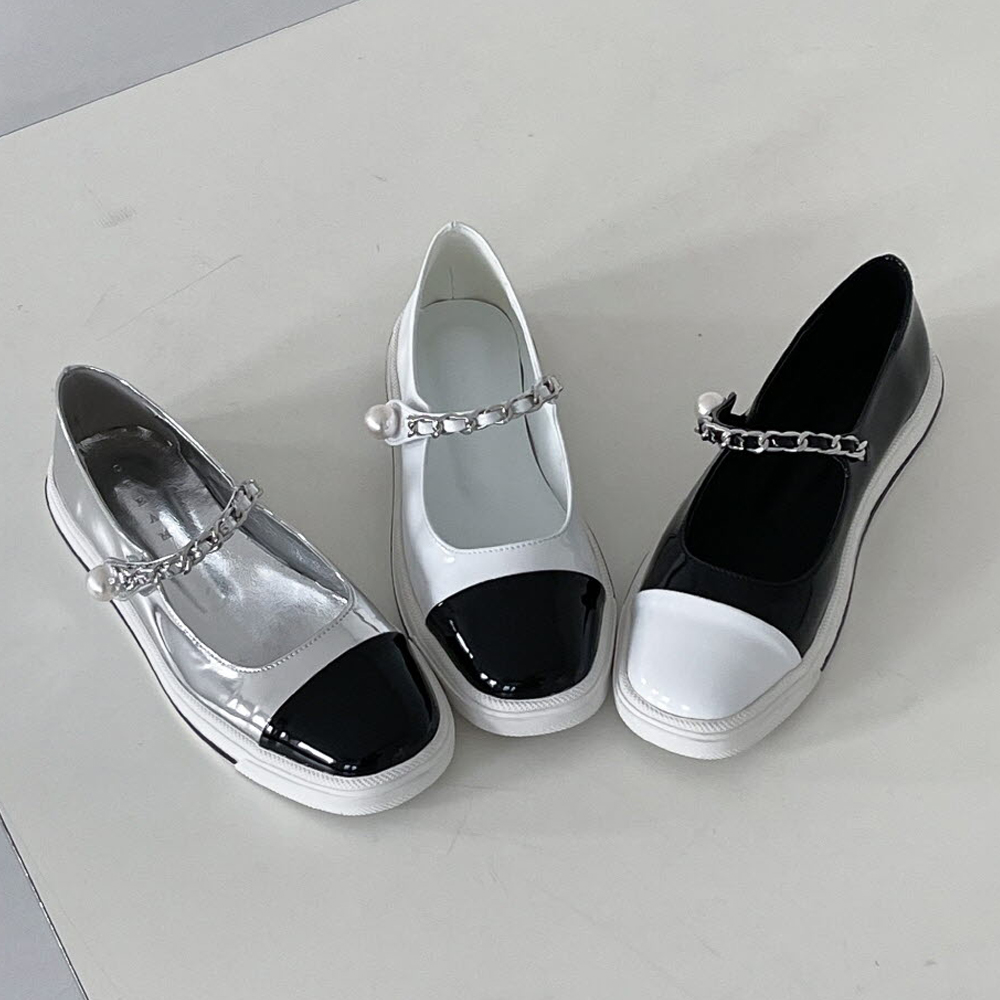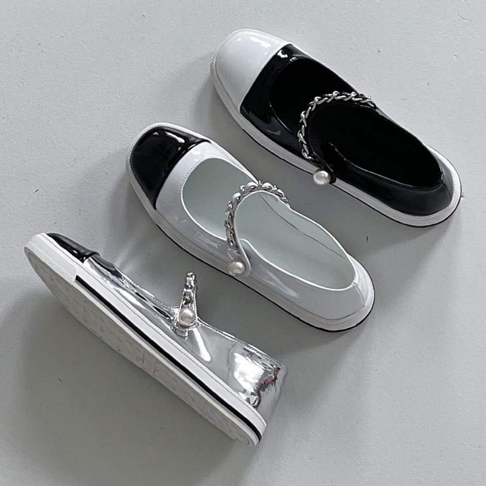 투톤 에나멜 진주장식 메리제인 플랫슈즈 : 25H