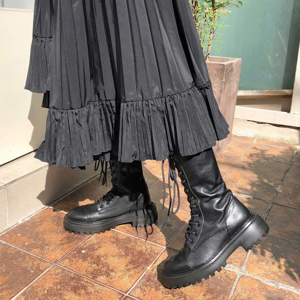 라운드토 청키통굽 미들힐 끈 통굽워커 5cm : 25H