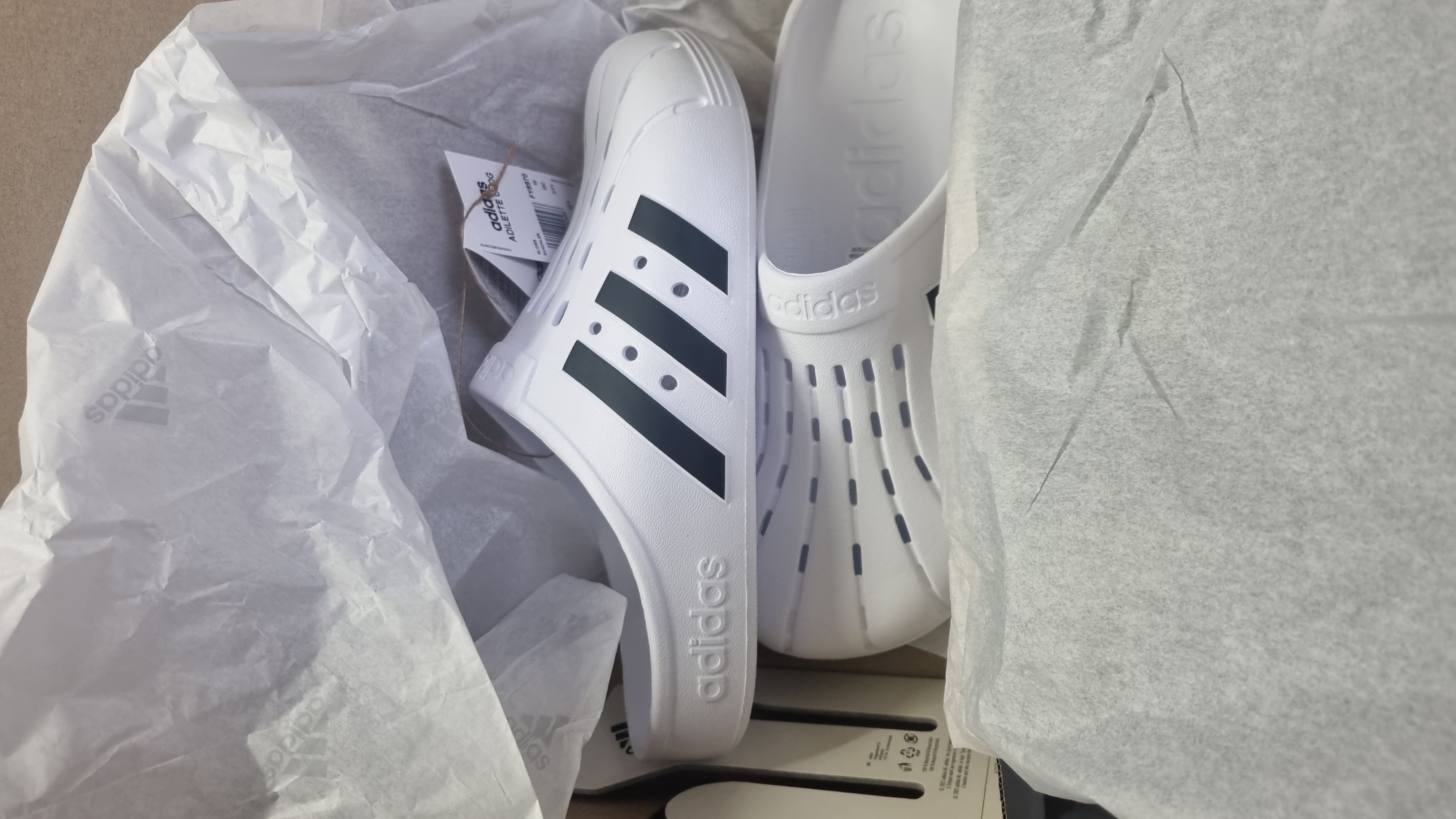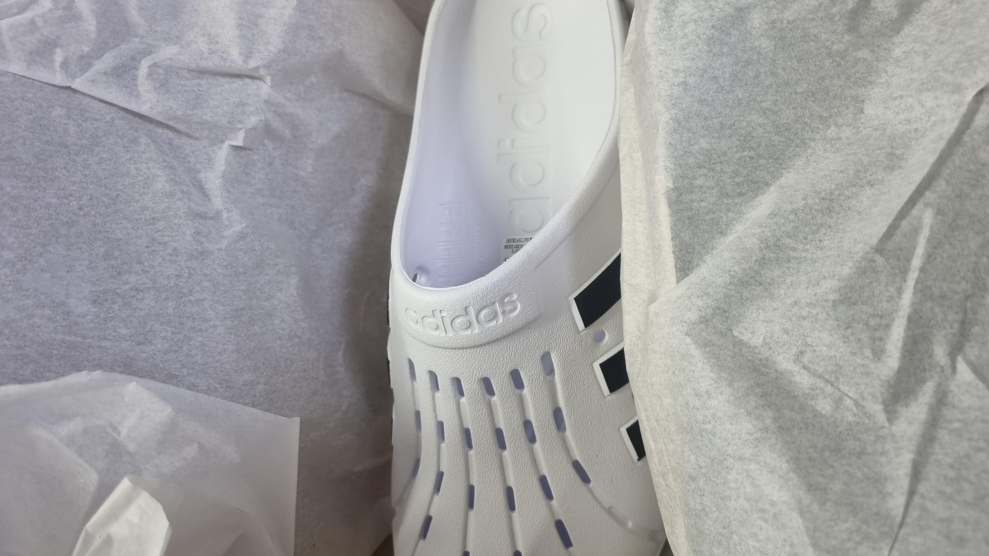 아디다스 아딜렛 클로그 화이트 블랙