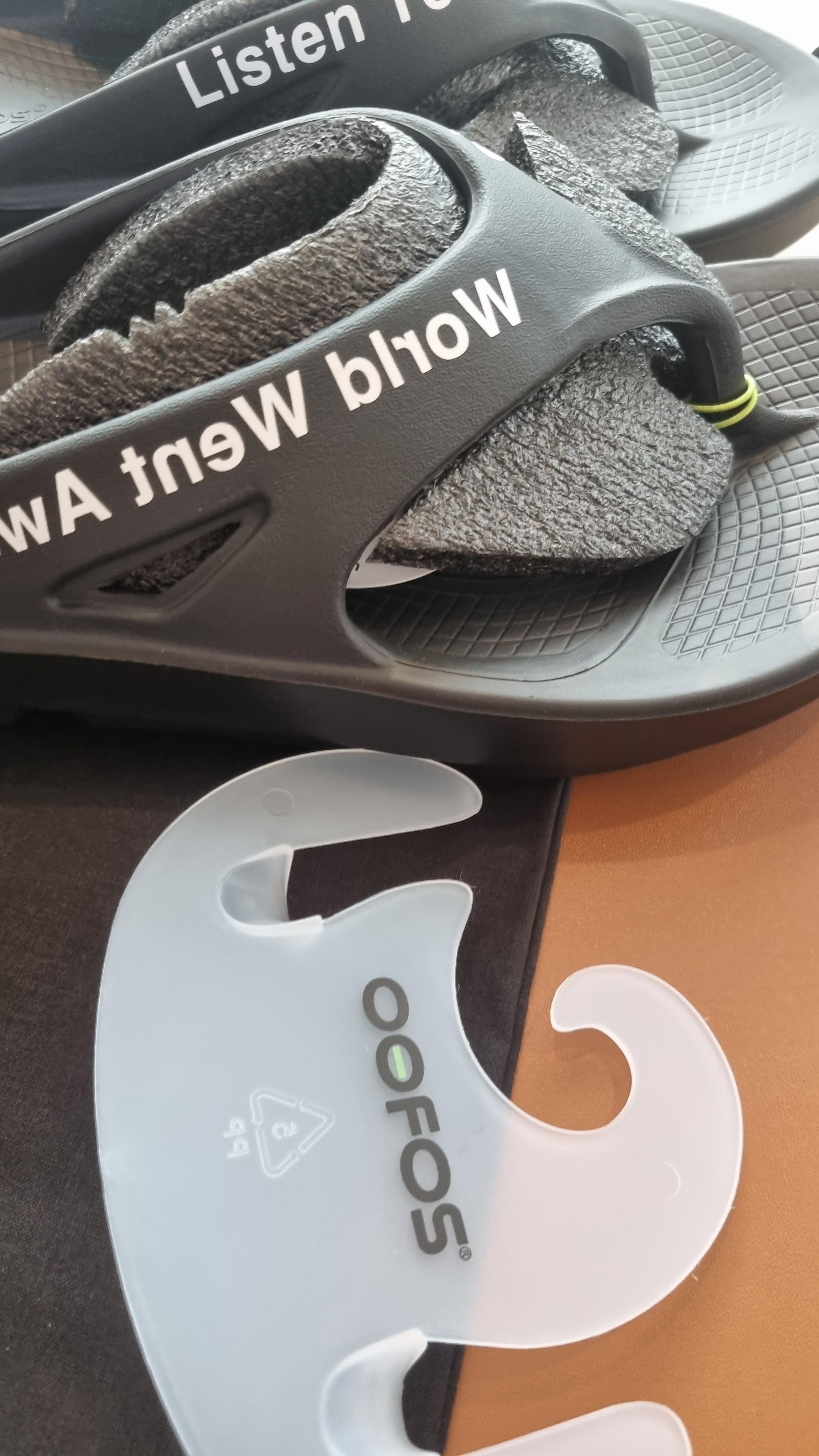 우포스 x 타카히로미야시타 더 솔로이스트 더 데이 더 홀 월드 웬 어웨이 플립-플랍 블랙 / sof0016