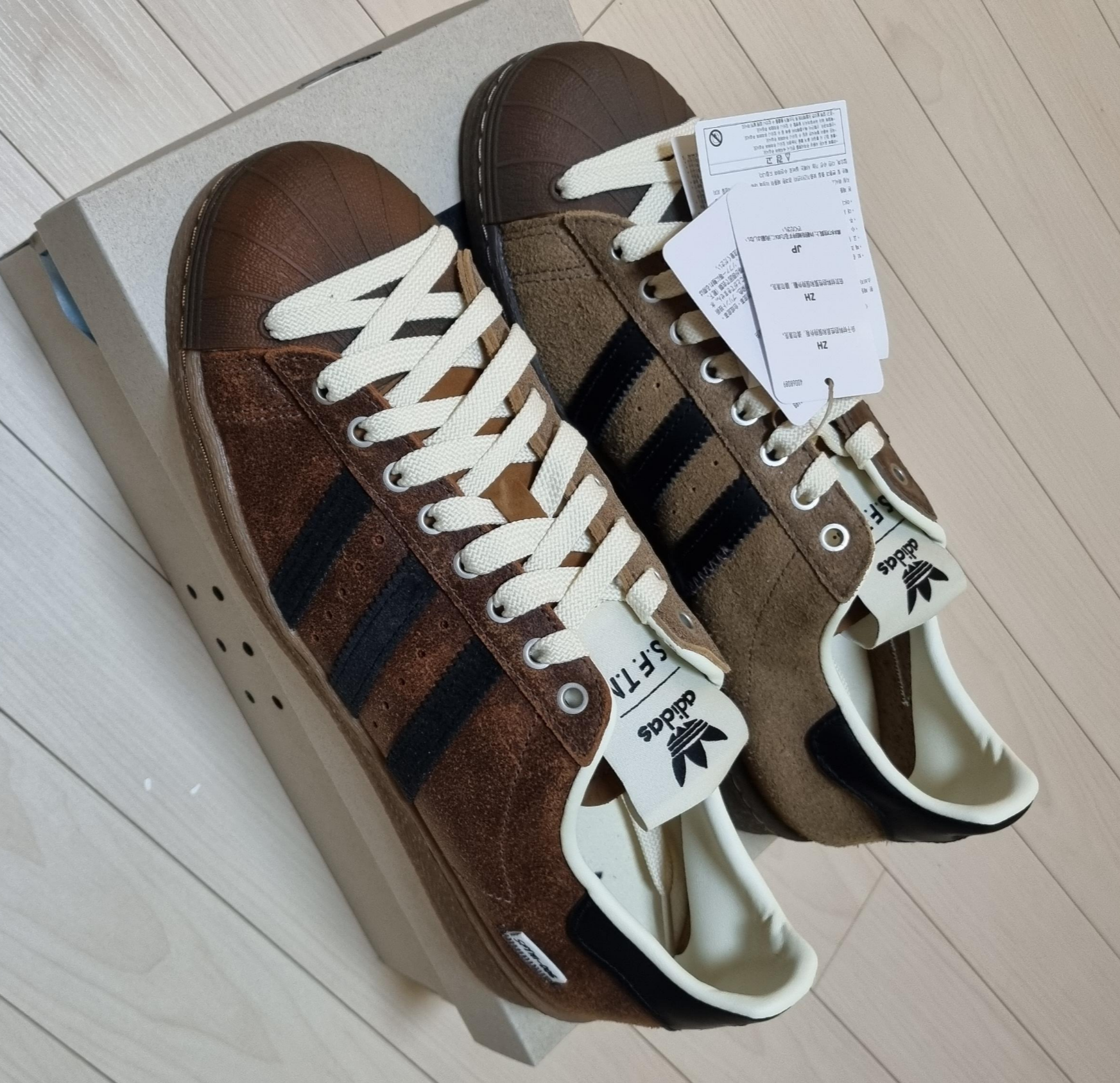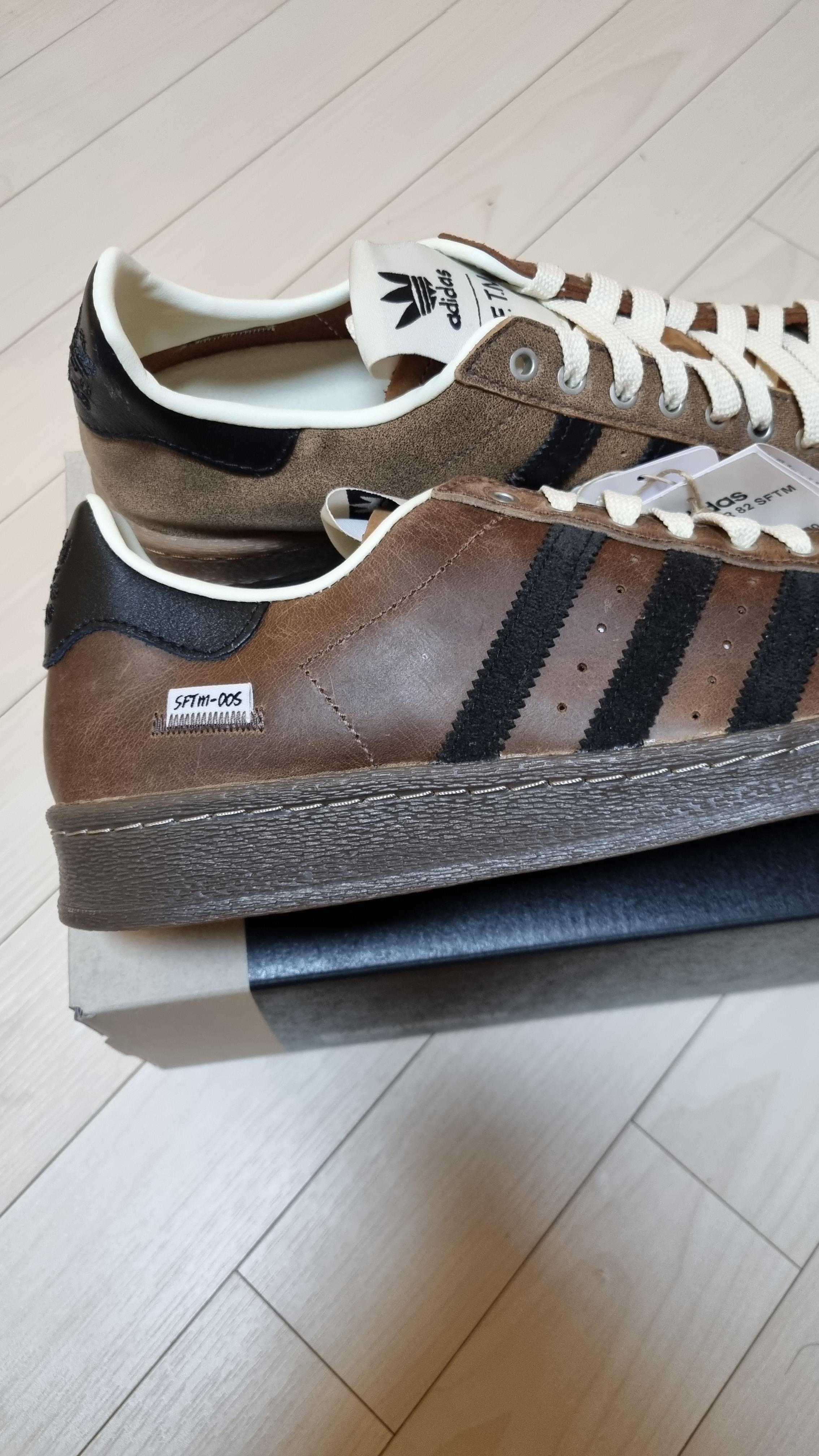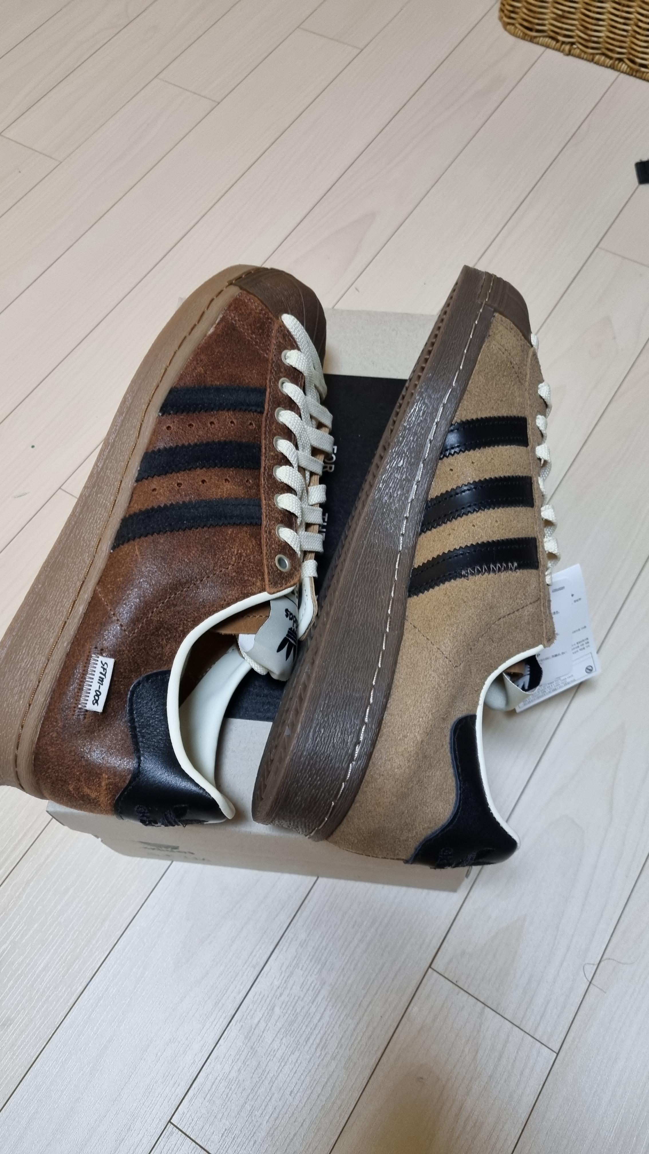 Adidas x Song for the Mute Superstar 82 Cream White Core Black아디다스 x 송 포 더 뮤트 슈퍼스타 82 크림 화이트 코어 블랙 JQ0958 이게 오른쪽 부분은 거친 느낌의 스웨이드이고 왼쪽은 가죽느낌의? 스웨